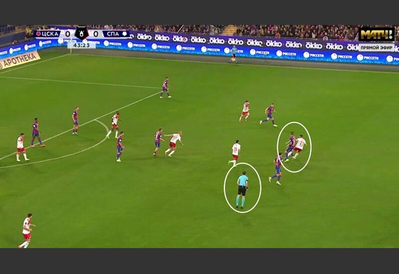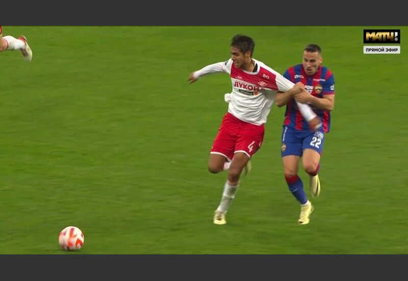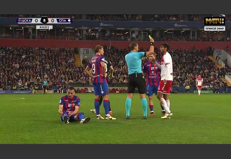 На 44-й минуте спартаковец Никита Чернов грубо сыграл против соперника на половине поля ЦСКА.