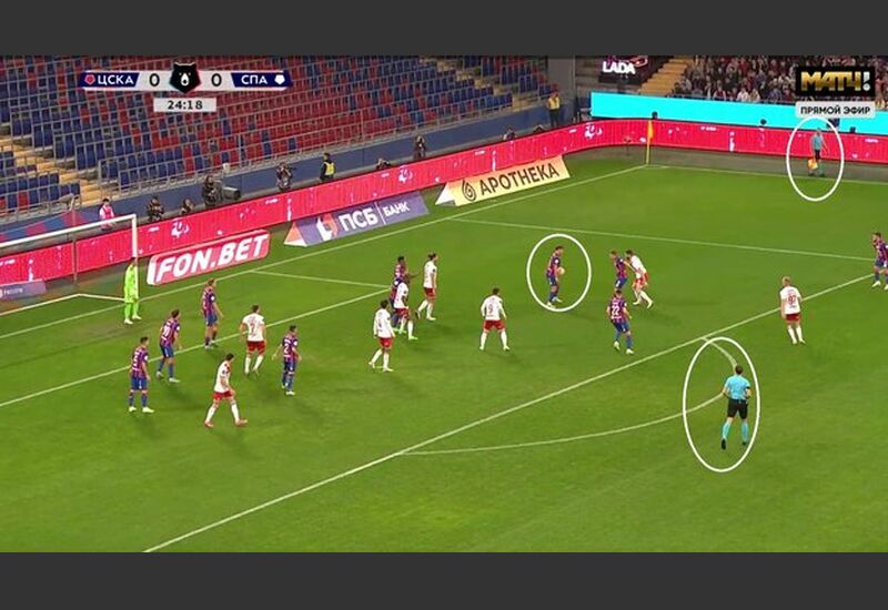 А спартаковцы в том эпизоде настойчиво требовали, чтобы арбитр зафиксировал фол Федора Чалова и наказал его за игру рукой 11-метровым ударом. Рефери, несмотря на это, продолжил матч. Возможно, получив какой-то сигнал от второго ассистента Игоря Князева, обзор которому не был перекрыт.