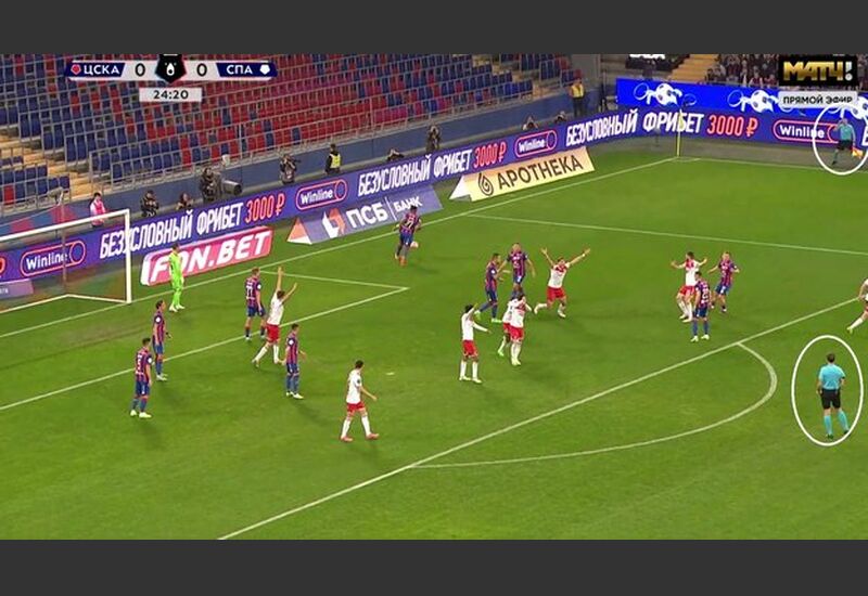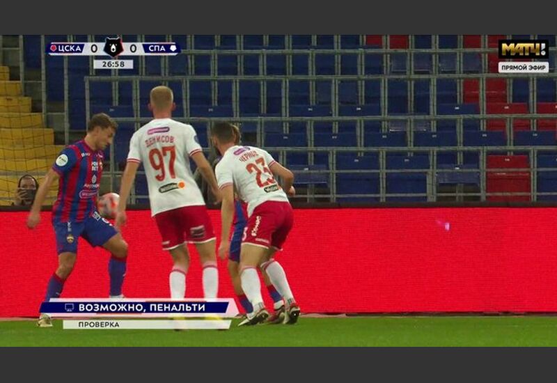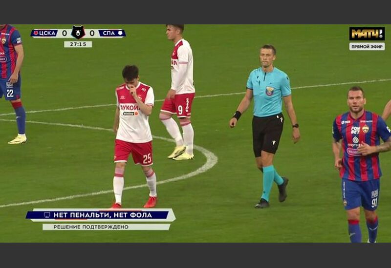 Через три минуты после проверки, проведенной видеоассистентами Виталием Мешковым и Евгением Кукуляком, решение судьи не назначить пенальти было подтверждено, так как нарушения правил они не обнаружили.