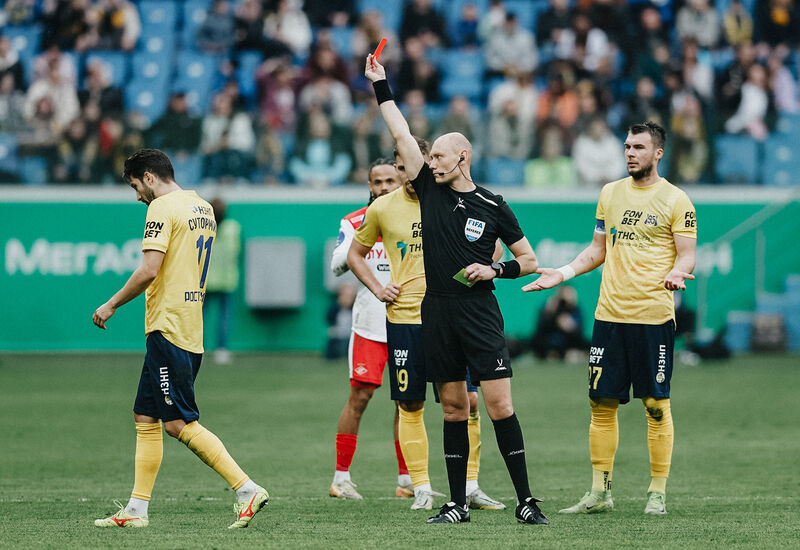 Сутормин очень грубо сыграл против Маркиньоса на фланге. Дело было в центральной зоне, и зачем было действовать в подкате столь опасно — непонятно. Арбитр Москалёв наказал ростовчанина сначала желтой карточкой, но после просмотра повтора поменял ее на красную.