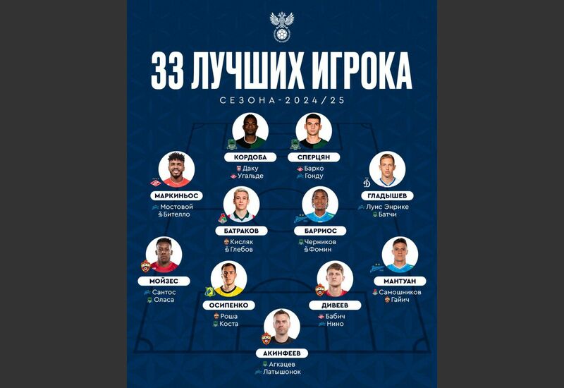 РФС назвал 33 лучших футболистов чемпионата России в сезоне-2024/2025