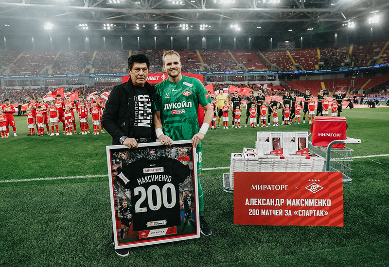 Перед стартовым свистком наш легендарный вратарь Ринат Дасаев вручил памятный подарок от клуба Александру Максименко. Недавний матч против «Балтики» в РПЛ стал для Саши двухсотым по счету за «Спартак». До него в истории клуба до этой отметки добрались всего четыре голкипера: Владимир Маслаченко, сам Дасаев, Станислав Черчесов и Александр Филимонов.