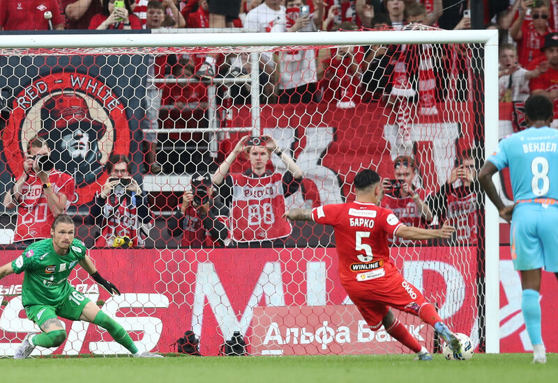 В начале встречи хозяева завладели мячом и заставили «Зенит» большую часть времени проводить на своей половине поля. Но первая же опасная атака гостей завершилась голом. Маркиньос неаккуратно сыграл в штрафной, срубив выскочившего из-за спины Луиса Энрике. Как тут снова не вспомнить об эксперименте Станковича с нападающими в роли латералей, ведь Солари привез такой же пенальти буквально четыре дня назад в кубковой встрече с махачкалинским «Динамо». К точке подошел Кассьерра, Максименко потащил его удар, но спартаковская оборона допустила ряд ошибок за пару секунд, позволив Матео со второй попытки затолкать мяч в сетку.