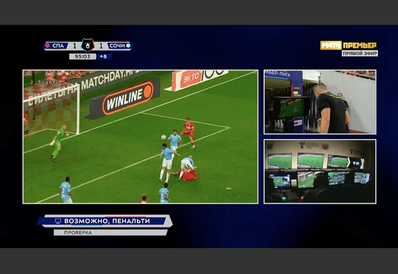 Судья все видит, но принимает решение после похода к монитору. Безусловно, момент не кристально чистый, это не 100-процентный пенальти. Есть элементы как за фол, так и за его отсутствие. Два игрока смотрят на мяч, держат друг друга. Все в статике, никто не бежит. Потом Заболотный чуть присаживается. Да, он выиграл позицию, а защитник вовремя не отпустил. У монитора, когда арбитр видит последний кадр, у него не было возможности не назначить пенальти. Пенальти не самый однозначный, но основания для его назначения были».
