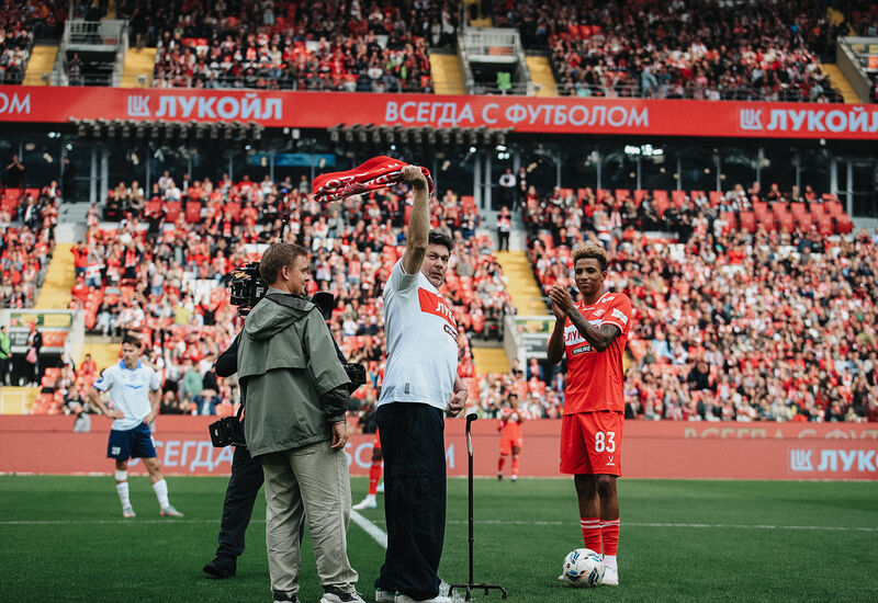 Символический первый удар по мячу в матче выполнил преданный спартаковский болельщик, известный актер, режиссер и телеведущий Сергей Белоголовцев. Недавно он перенес инсульт. Желаем Сергею Геннадьевичу скорейшего восстановления!