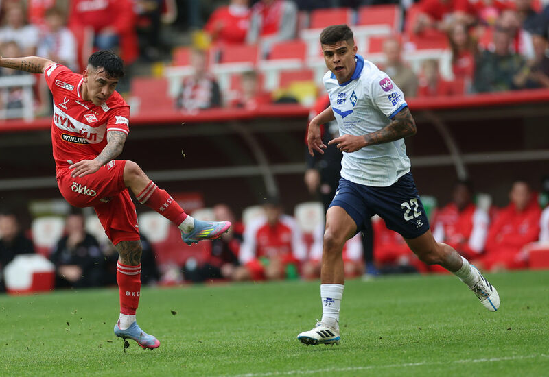 Это спровоцировало «Спартак» провести двойную замену уже на 37-й минуте. С игры сняли двух крайних защитников — Денисова и Рябчука, и выпустили Солари и Дмитриева. Таким образом, на краях обороны у красно-белых оказались номинальные вингеры. Ультраатакующая модель, которая помогла взвинтить темп в концовке тайма.