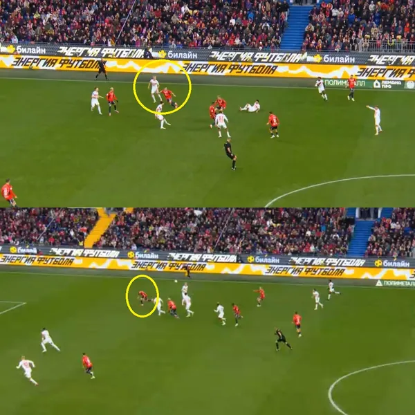 Оставлять Глебова раз за разом за спиной у Денисова — с учетом, что на подстраховке чаще всего был медленный Бабич — тактический самострел. В итоге Глебов весь матч без опеки разрывал правый фланг «Спартака», а при первом голе оторвался от Денисова и влетел в штрафную.