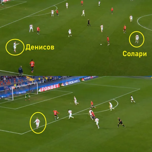 Вероятно, задумка была в том, чтобы развязать руки Солари: тот не был привязан к правой бровке, часто смещался в центр и играл рядом с Угальде второго форварда. В его отсутствие фланг заполнял Денисов. Звучит неплохо, если бы не деталь: слева у ЦСКА играет самый быстрый игрок РПЛ Глебов.