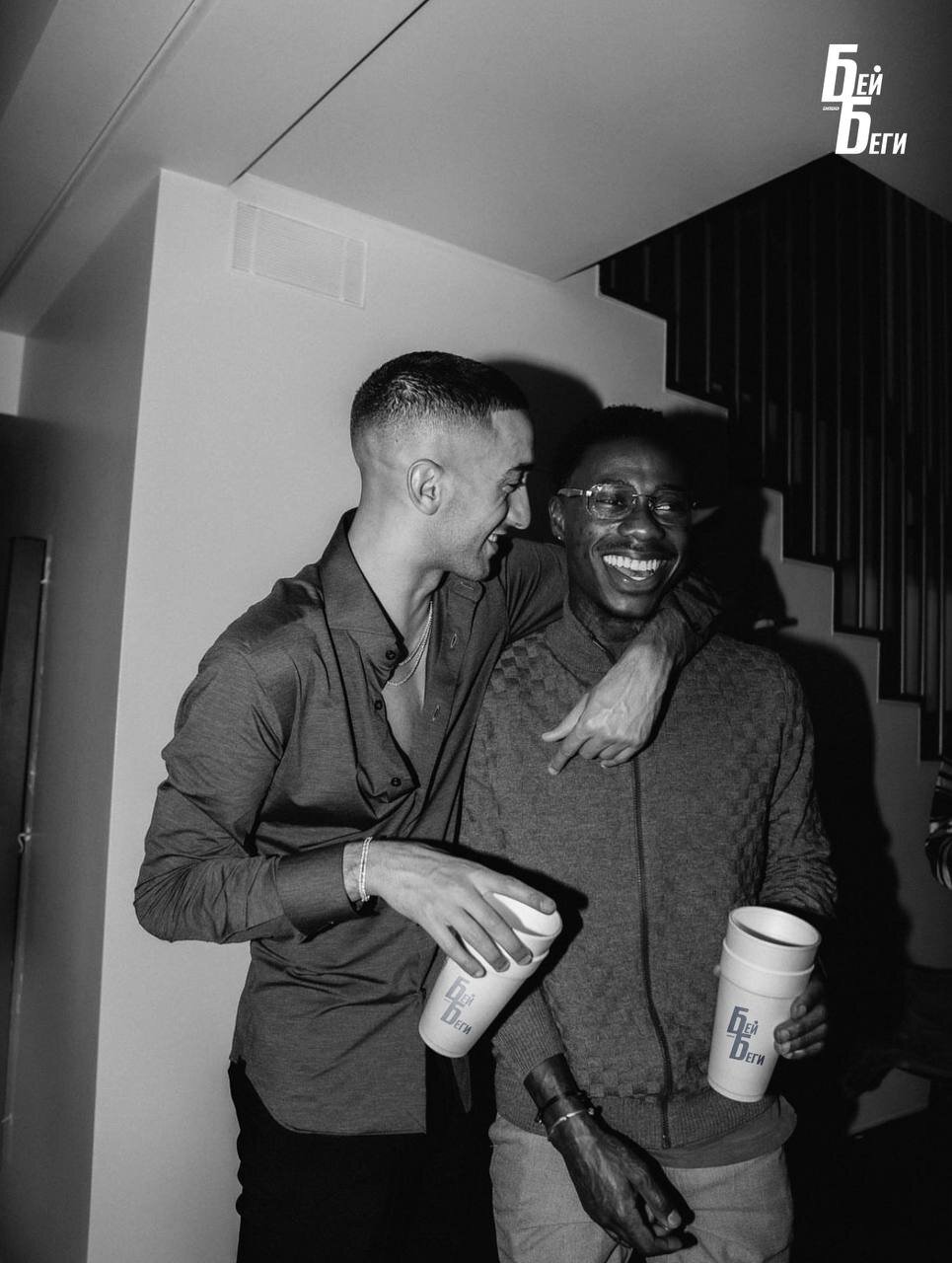 Среди гостей есть по-настоящему суперзвездные имена. О самом громком вы наверняка уже слышали. «Бей Беги» пригласил хавбека «Челси» Хакима Зиеша. Все просто: Зиеш и Промес – давние друзья, они вместе выступали за «Аякс» в сезоне-2019/20. Марокканец прилетел в Россию на выходные и поддержал Квинси на премии Winline Герои РПЛ.