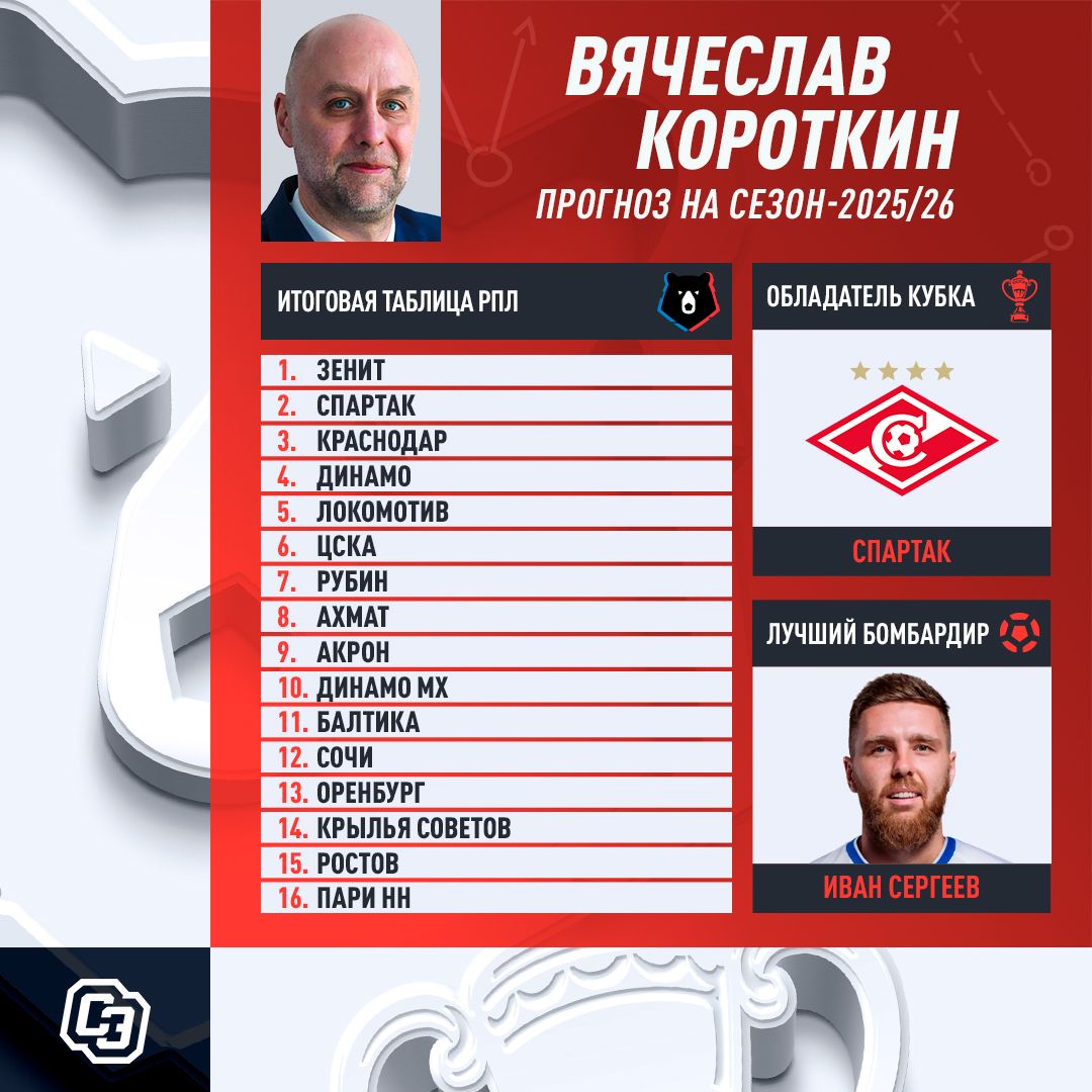 Есть ощущение, что острейшая борьба за титул — это не про сезон-2025/26. «Краснодару» не хватит мощностей, чтобы справиться с давлением и удержаться на троне, ЦСКА с только недавно пришедшим Фабио Челестини еще не готов к грандиозным свершениям, а в чемпионство «Спартака» или «Динамо» совсем не верится. Уж простите, поклонники московских команд.