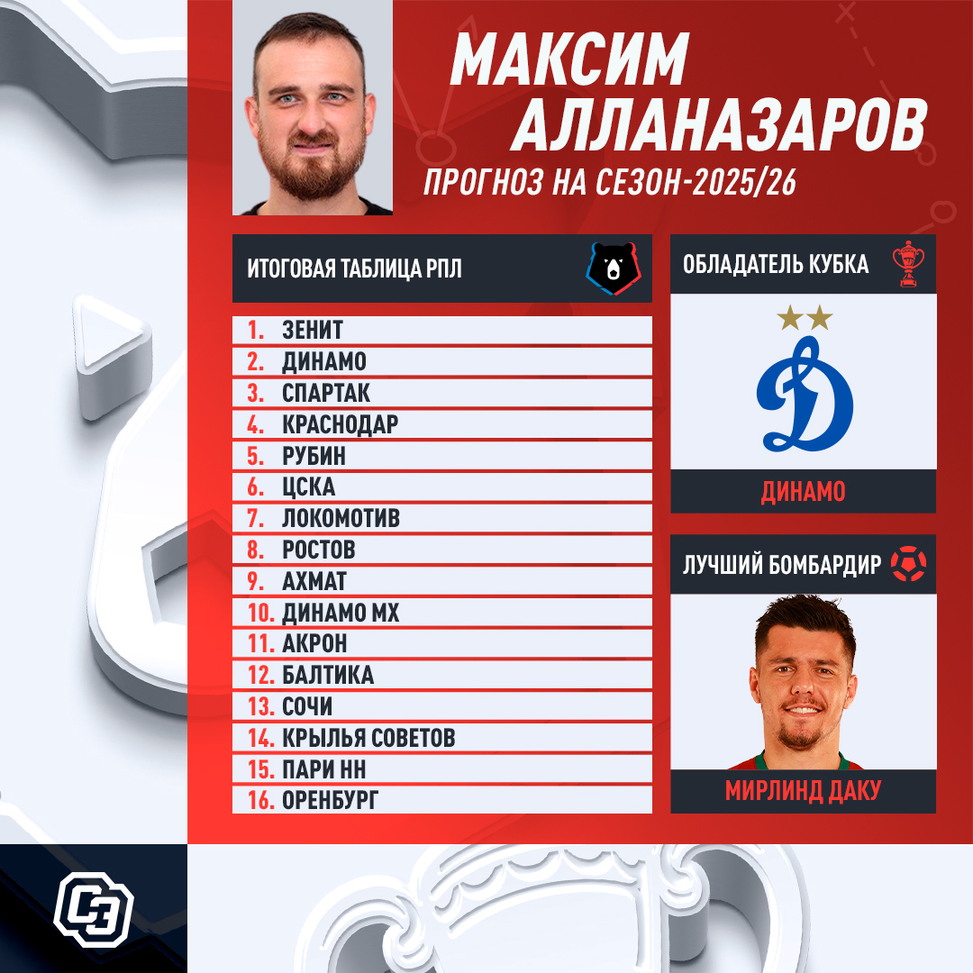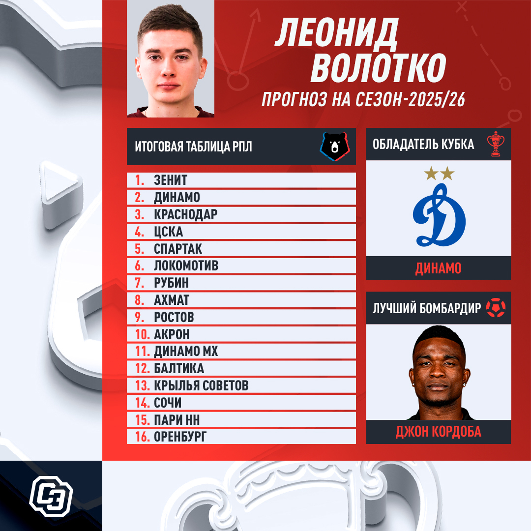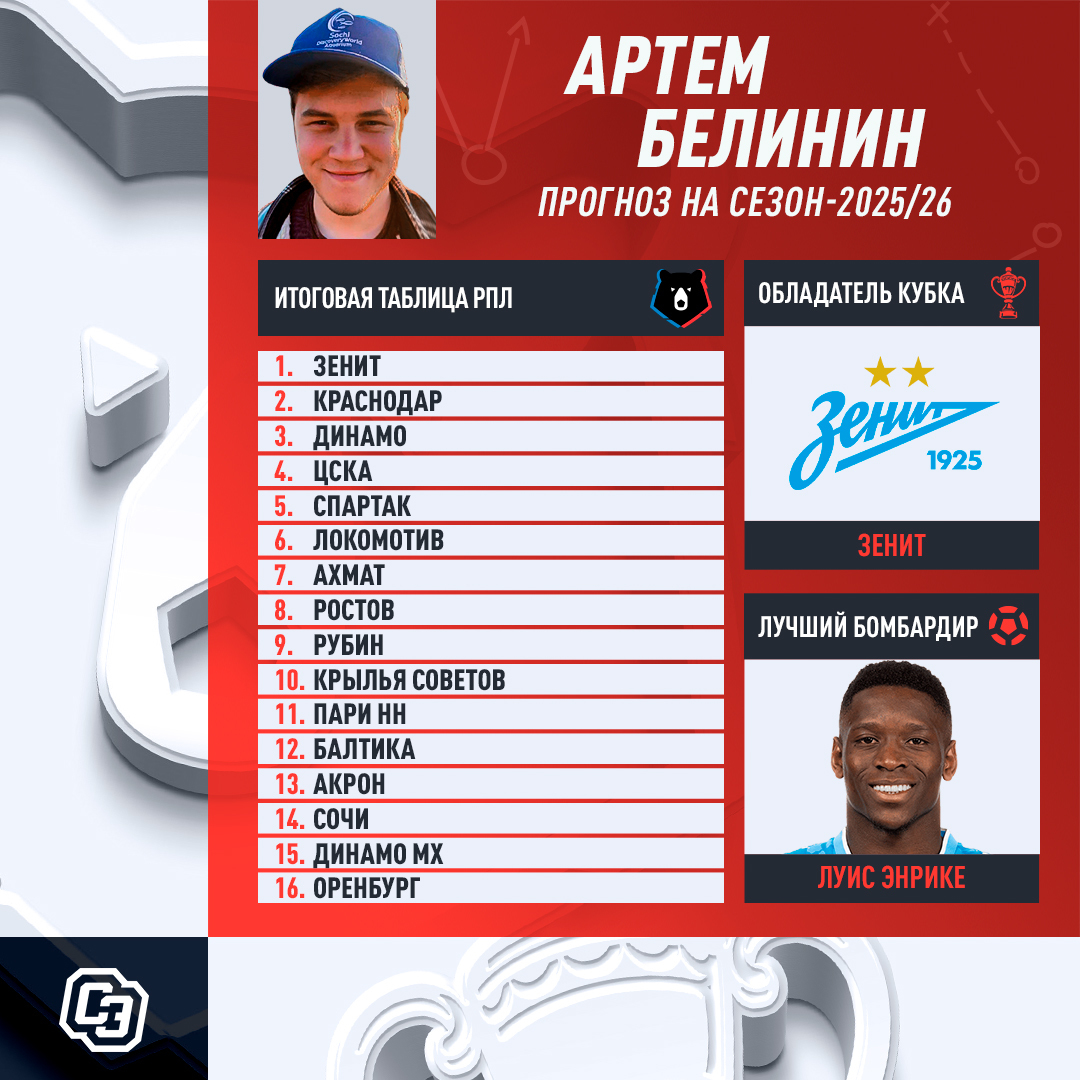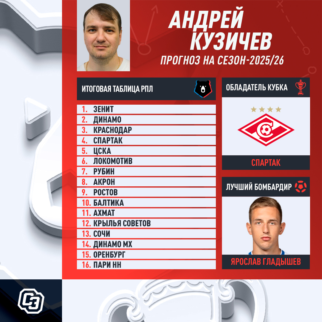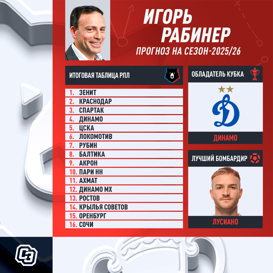 Чемпионом, конечно, будет «Зенит». Никто же не разрешит им снова перенести столетие, верно? А одним из открытий вижу «Рубин». У казанцев отличная команда, они продлили контракты с лидерами, неплохо выступили в прошлом сезоне и должны прогрессировать дальше.
