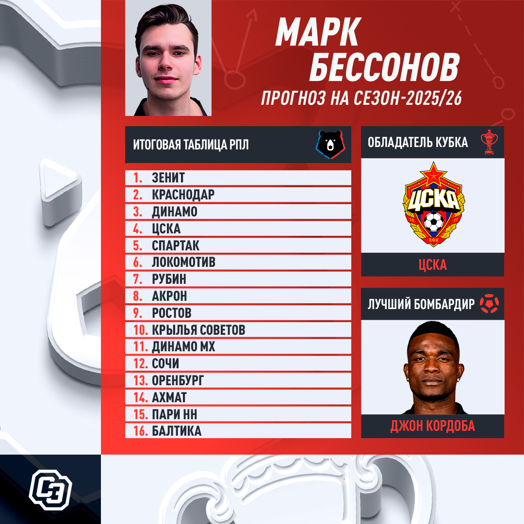 «Зенит» в последние годы — всегда фаворит, а в нынешнем розыгрыше особенно. После громкого провала в РПЛ и Кубке петербуржцы объявили сезон-2025/26 «истинно юбилейным», чем дали и администрации, и штабу, и игрокам второй шанс не испортить день рождения клуба. Так как третий раз перенести столетие не получится, вероятно, мотивация у «Зенита» будет огромная — поэтому жду от команды Сергея Семака успехов в двух турнирах.