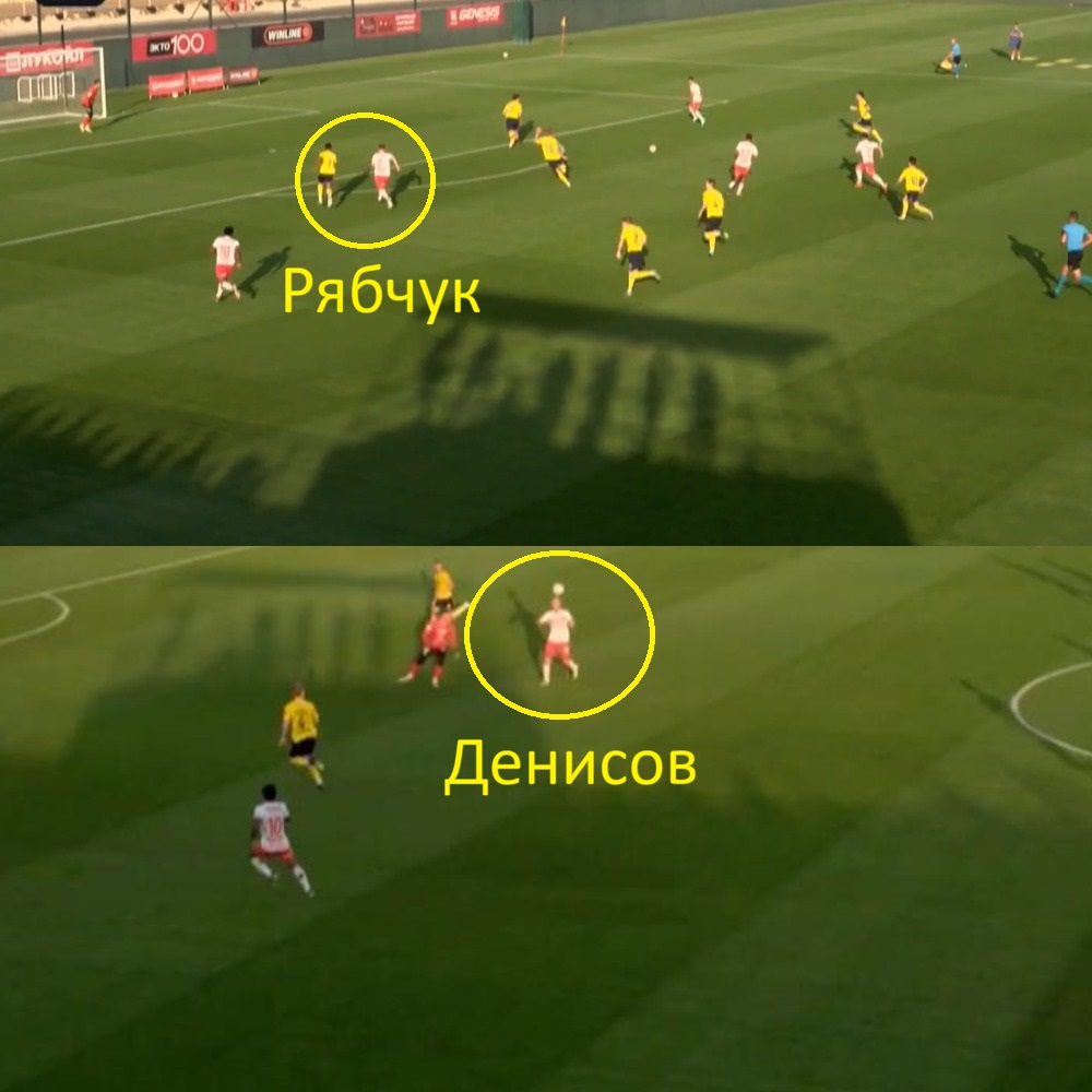 Но на деле они играли «восьмерок», сужаясь к центру. А фланг освобождали для крайних защитников — Сауся и Дмитриева — которые бороздили бровку.