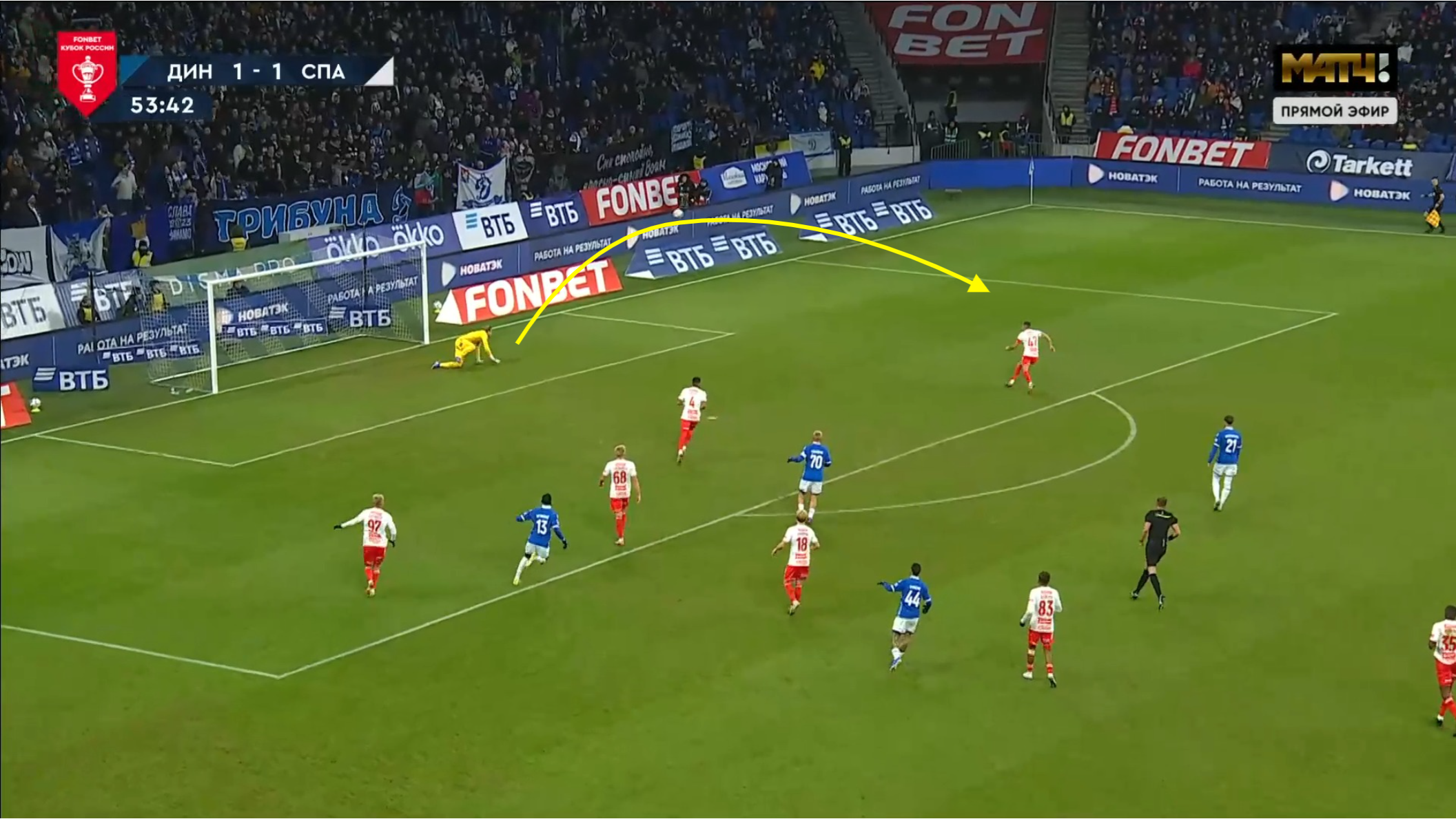 Например, удар Рубенса в матче против «Динамо». Соперник плюнул далеко из-за пределов штрафной, но что-то помешало Максименко просто зафиксировать удар — при этом, судя по повторам, не было рикошетов и вряд ли кто-то закрывал Александру видимость. Пришлось подставлять руки как под подачу в волейболе и выносить мяч именно таким образом.
