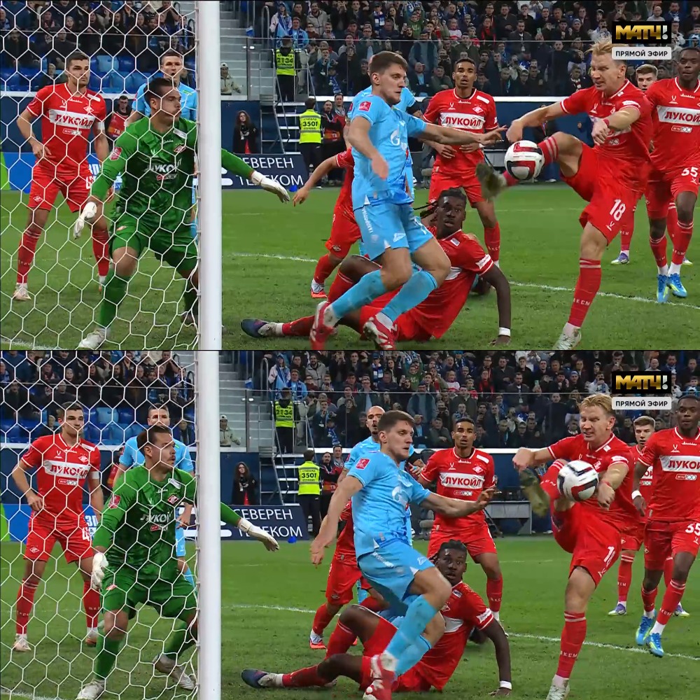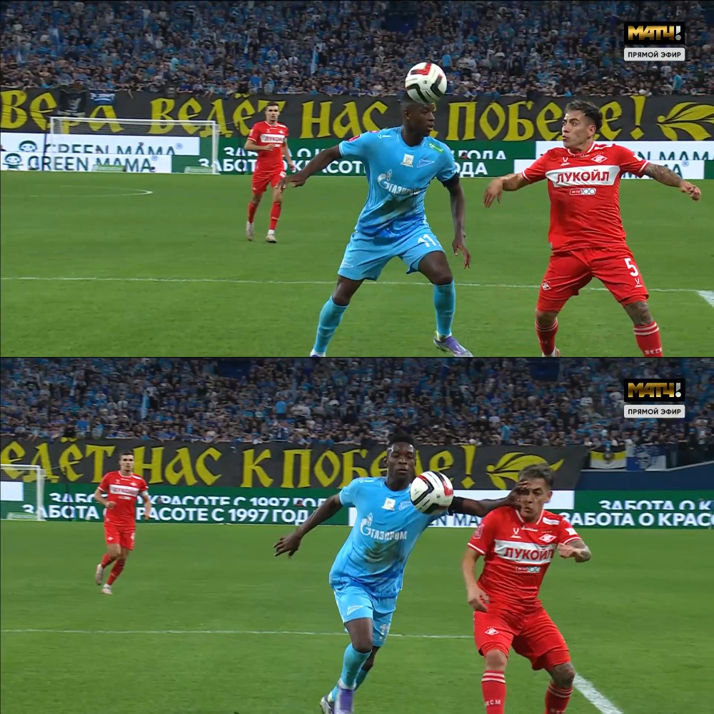 При этом на последней минуте компенсированного времени «Зенит» требовал назначить пенальти в ворота «Спартака». Умяров, выбивая мяч из штрафной, попал себе же в руку.